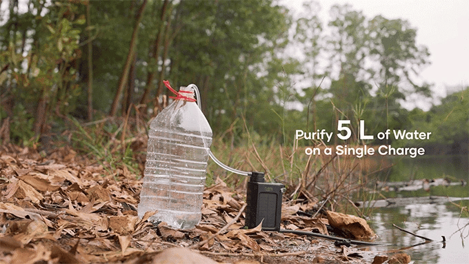 Portable Water Filtration System with Solar Panel and Hand Crank